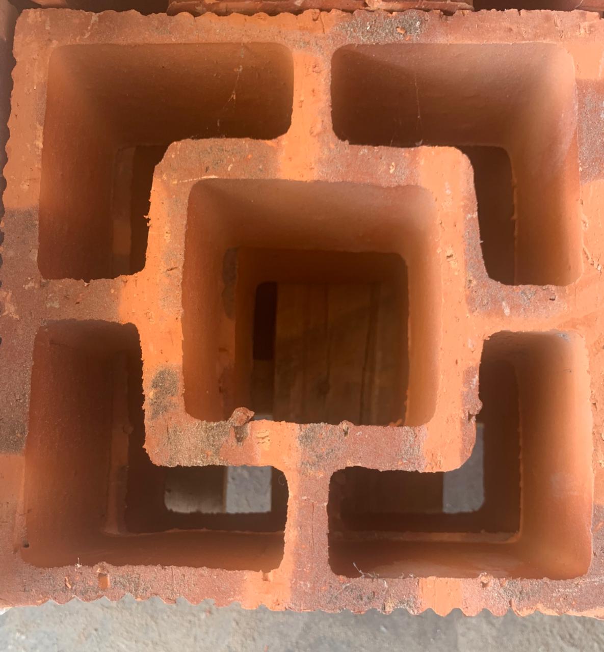 Bloco cerâmico com vazado quadrado reto. Design clean e atemporal que se adapta a diversos estilos arquitetônicos, ideal para quem busca uma solução prática para iluminação natural e ventilação cruzada.