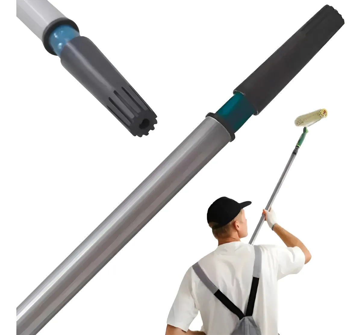 Cabo extensor telescópico em aço com alcance de até 3 metros. Indispensável para pinturas em tetos ou paredes altas, permitindo trabalhar com segurança e sem a necessidade constante de escadas.