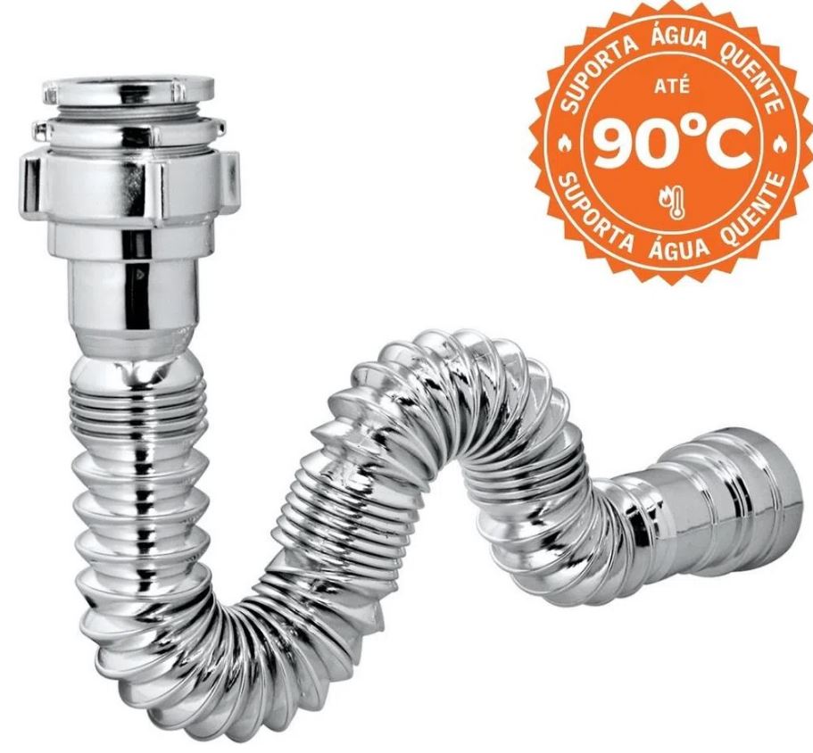 SIFAO SANFONADO SIMPLES PVC CROMADO