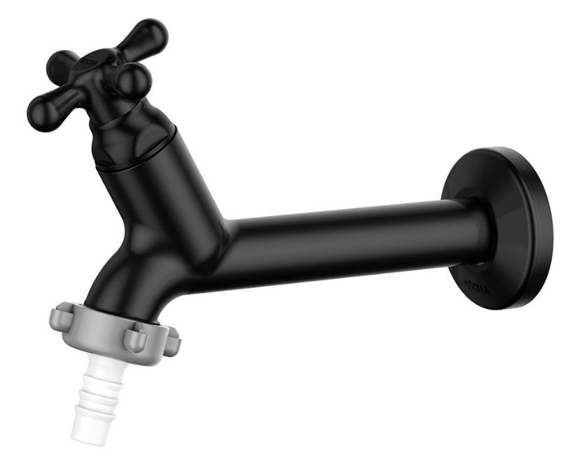 Torneira de cozinha preta com bica de 15cm e bico funcional. O acabamento preto traz modernidade ao ambiente, enquanto a bica longa oferece conforto no manuseio diário em pias diversas.