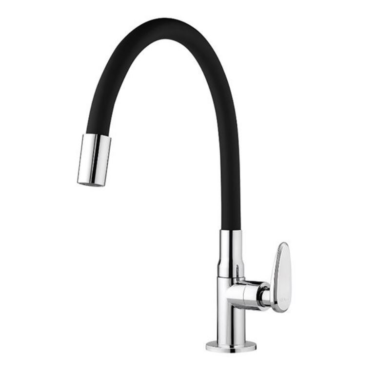 Torneira de bancada preta com bica móvel. Combina estética premium com funcionalidade. A bica móvel facilita o alcance em cubas grandes, sendo fabricada em ABS de fácil limpeza.